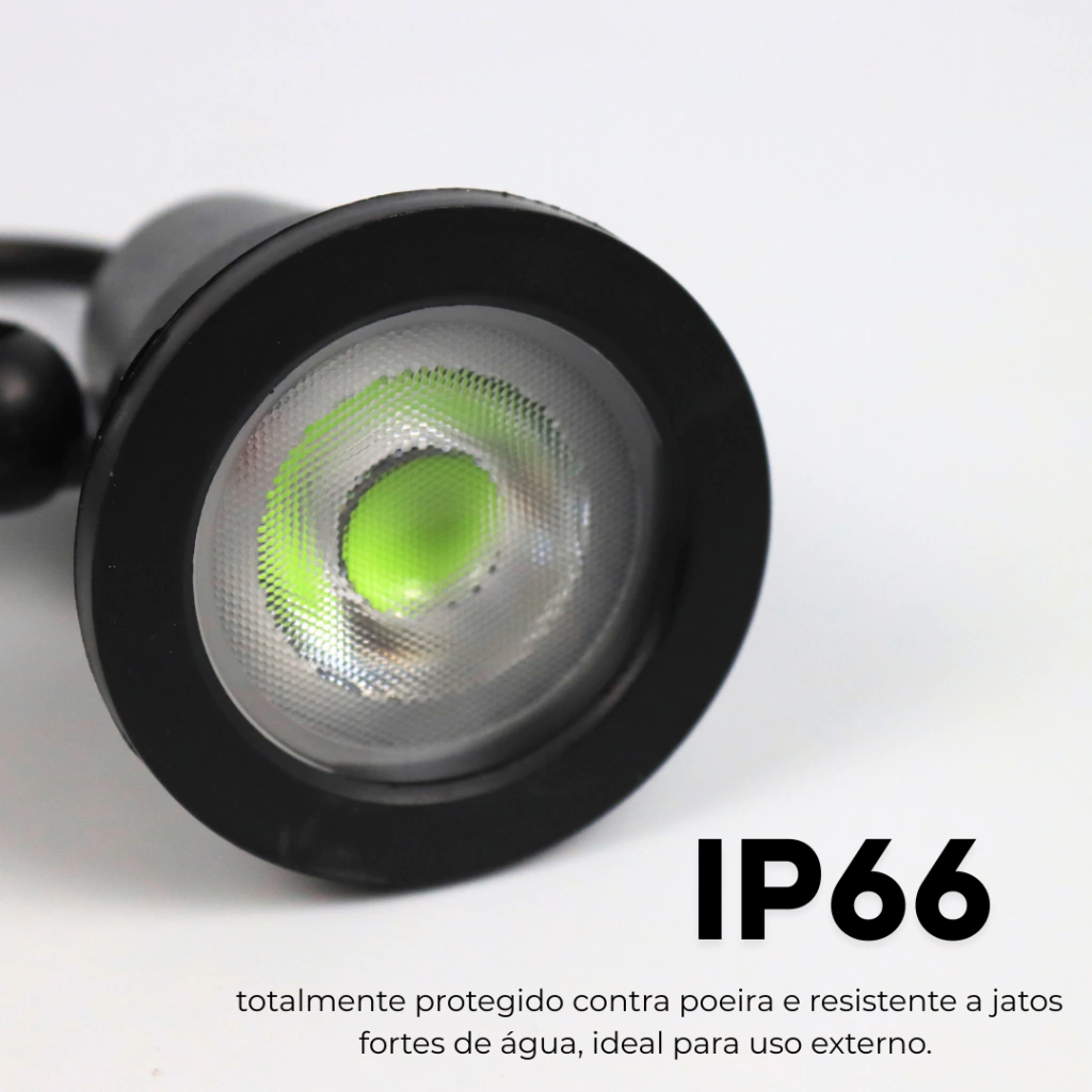 Seu acabamento preto traz sofisticação e discrição, integrando-se facilmente ao cenário. O produto possui proteção IP66, garantindo resistência contra poeira e jatos de água, sendo ideal para uso em áreas externas. Além disso, conta com fator de potência 0.6, tecnologia bivolt e baixo consumo de energia, unindo eficiência e durabilidade.