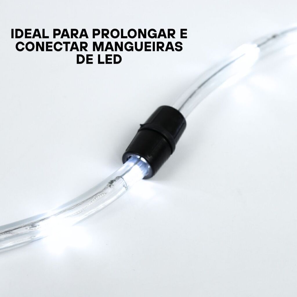 A Emenda Preta JEQT foi desenvolvida para garantir praticidade e segurança na instalação de mangueiras de LED redondas de 10,5mm. Ideal para unir trechos de mangueira com firmeza, ela proporciona acabamento discreto e resistente, mantendo a continuidade da iluminação sem falhas.