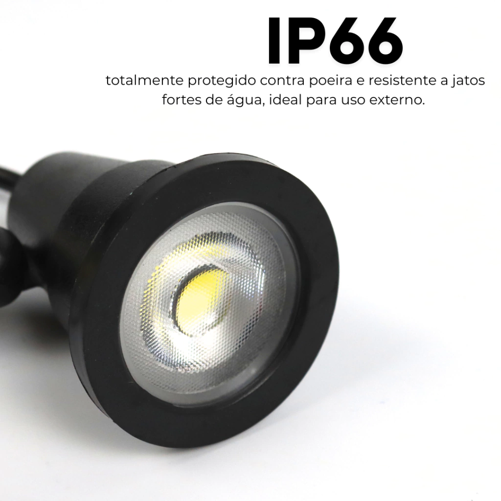 Grau de Proteção: IP66 ( o totalmente protegido contra poeira e resistente a jatos fortes de água, ideal para uso externo.)