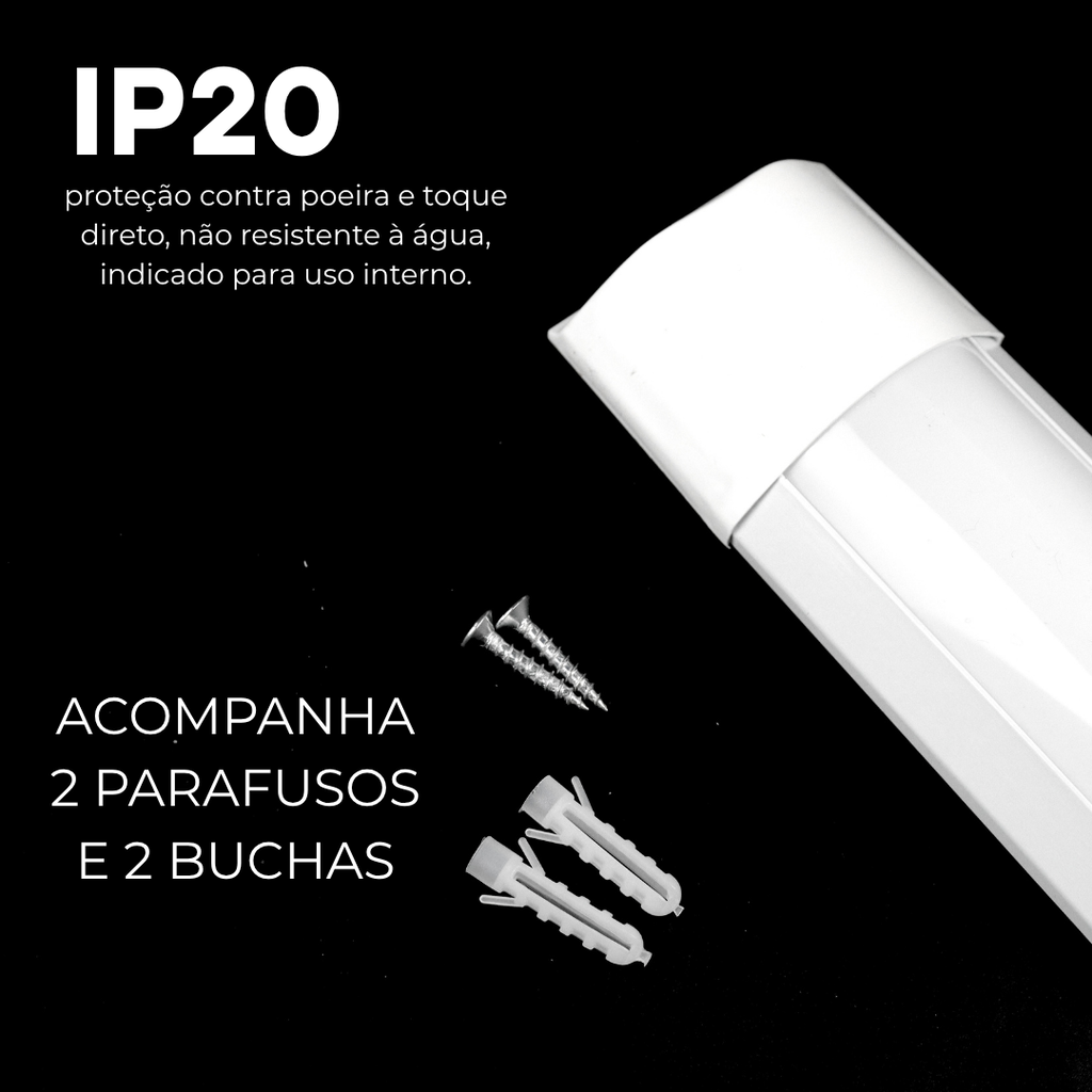 Grau de Proteção: IP20 proteção contra poeira e toque direto, não resistente à água, indicado para uso interno.