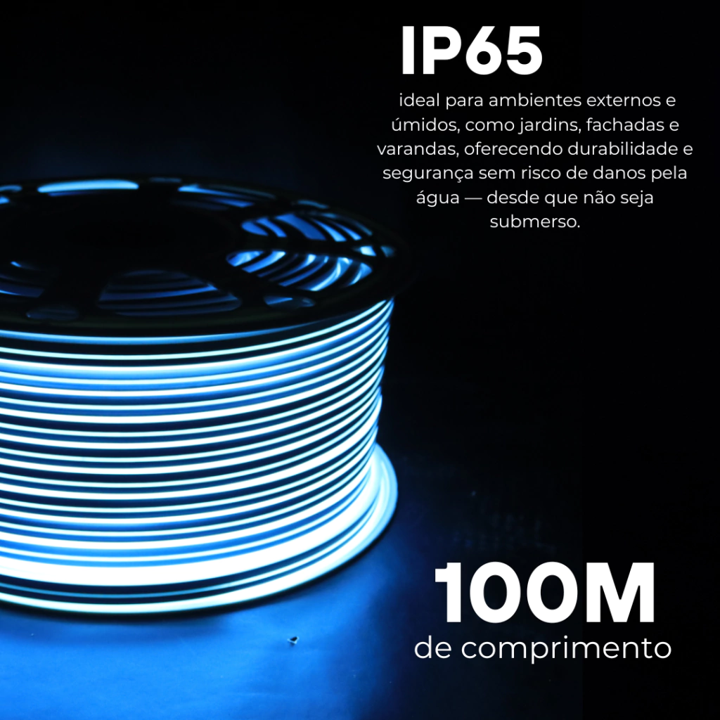 A Mangueira LED Neon Azul Claro 110V é perfeita para quem busca iluminação decorativa com efeito contínuo e sofisticado. Com 120 LEDs por metro, ela oferece um brilho intenso e uniforme, sem os pontos visíveis das fitas tradicionais. Seu tom azul claro cria um visual moderno e elegante, ideal para destacar fachadas, vitrines, sancas, áreas externas, eventos e decorações criativas.